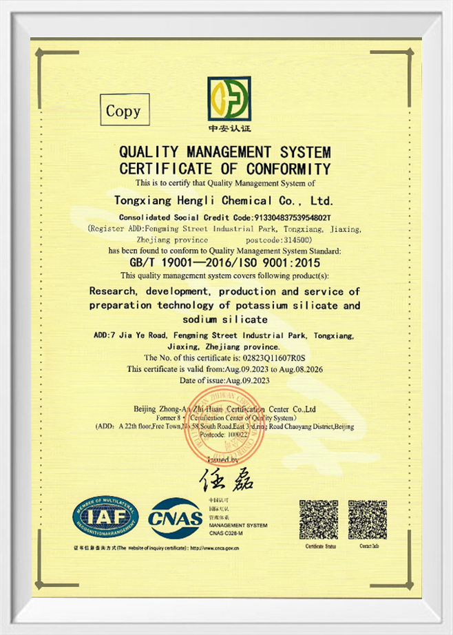 Modúl(M):3.6-3.8 Tá slaodacht agus neart ard ag sileacáit photaisiam leachtach. Cuireann slaodacht ard ar a chumas cloí go tapa le dromchla an ábhair agus na pores a bhriseadh nuair a úsáidtear é mar ceanglóra chun banna daingean a fhoirmiú; cinntíonn ard-neart gur féidir leis an struchtúr foirmithe fórsaí seachtracha éagsúla a sheasamh agus nach ndéantar damáiste dó go héasca. Ag an am céanna, tá cobhsaíocht mhaith ceimiceach aige agus féadann sé airíonna agus feidhmíocht chobhsaí a chothabháil faoi thimpeallachtaí éagsúla. Tá Tongxiang Hengli Chemical Co., Ltd ag brath ar theicneolaíocht táirgthe chun cinn chun an próiseas táirgthe a rialú go cruinn chun feidhmíocht chobhsaí an sileacáit photaisiam leachtach aschuir a chinntiú.